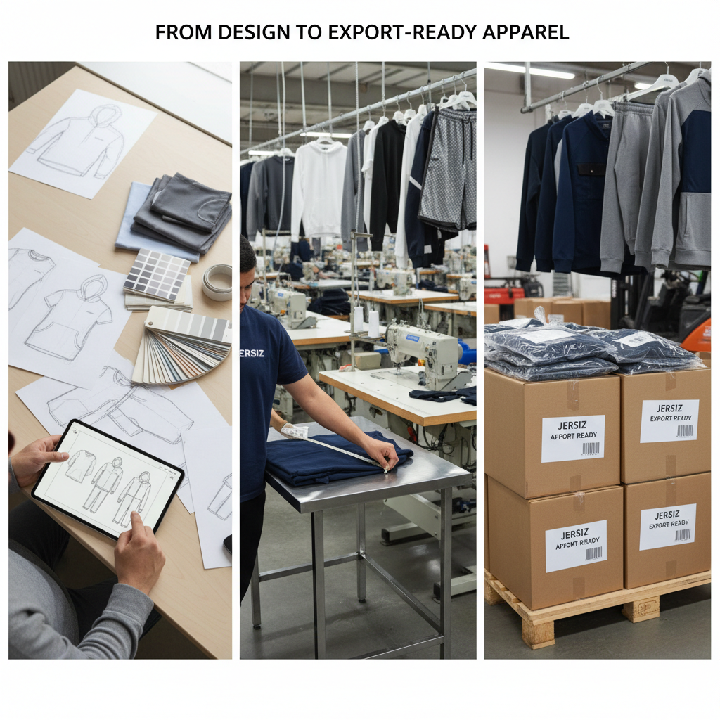 We manufacture custom streetwear, sportswear, and workwear with flexible MOQs, full private label support, and export-ready quality, helping brands, clubs, and companies launch and scale collections confidently.